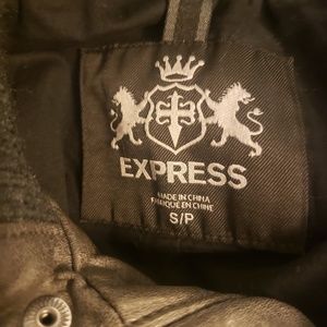 Express vegan leather jacket. Rustic grey color, functional zipper but also has buttons. In perfect condition.