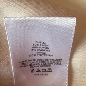 Gathered wide elastic waist with ample stretch . Fully lined in lightweight ivory polyester. Buttons at back neck with two tiny fabric covered buttons/loops. Beautiful condition.