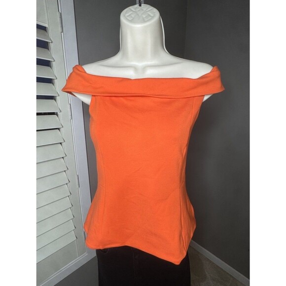 EXPRESS off-shoulder orange top side zip Spring Summer SZ SMALL *read*
