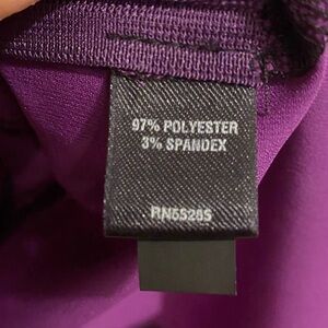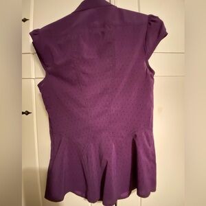 Color is a darker purple than pictured - a little less magenta tone and more of a true purple. Beautiful ruffle front top with cap sleeves and a hidden zipper as well as princess seems and inset side panels. Tiny black polka dots add to the drama of this super cute top. Size XS.