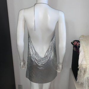 EXPRESS silver metal mesh chain mail halter party holiday Studio 54 Y2K runway