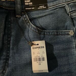 Express skinny high rise blue jeans. Nwt. 0R. Skinny jeans. High rise. Super soft knit. Comfort stretch waist.