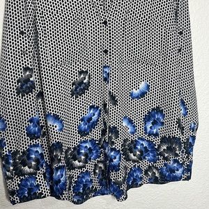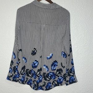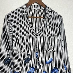 Express The Portofino shirt. Size Large. Gorgeous dark florals with contrasting dotted details. Excellent preowned condition. Smoke free home.
