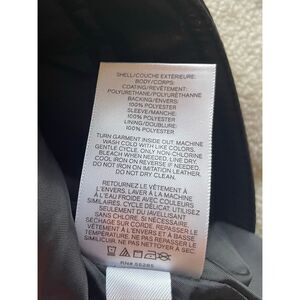 Stay cozy and stylish when the weather turns chilly. Faux shearling sleeves add luxe texture while the point collar and asymmetrical zipper give you edgy appeal. FEATURES & FABRIC Notch lapels; Asymmetrical zip front Faux shearling long sleeves; Vegan leather body Zip hand pockets Straight hem Polyester/Polyurethane.