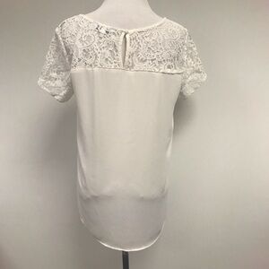 Longer in the back than the front. Great for work paired with black slacks or pencil skirt.