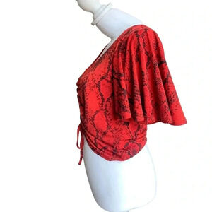 EXPRESS women's XS cropped red blouse with flowy sleeves