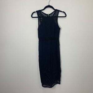 EXPRESS Black Midi Dress With See-through Mesh Midi Section Below Knee Length. S