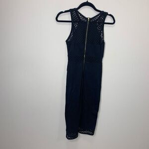 EXPRESS Black Midi Dress With See-through Mesh Midi Section Below Knee Length. Size 0. Cocktail Dress