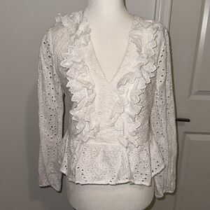 EXPRESS EYELET LACE RUFFLE FRONT PEPLUM TOP