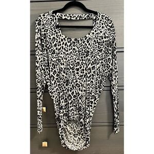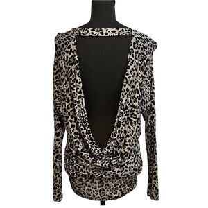 EXPRESS Long Sleeve Backless Top, Leopard Print SZ XS