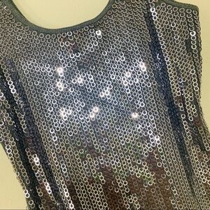 A comfy elegant feel with brilliant shine, this tank top is covered with sequins for a stunning look layered or alone.