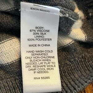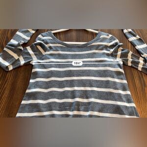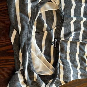 Very cute and fun thin long sleeve sweater. Back has an open slit for flirty look with an inner attached light chiffon tank. No stains nor flaws nor tears. Lightly worn.