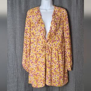 Floral long sleeve romper, deep v, and I tie to make it a cinched fit. Size XS