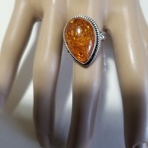EXQUISITE BALTIC AMBER GEMSTONE 925 STERLING SILVER RING