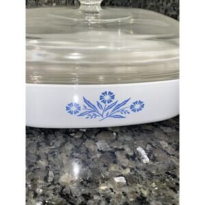 This extremely rare 4-piece set of vintage PYREX Corning Ware from the 1950s is a charming addition to any collector's kitchen. The set includes two A-2-B casserole dishes with a 2 and 2.5 quart capacity, both featuring a square shape and coming with lids made of tempered glass. These original pieces are compatible with electric, gas, and microwave ovens, making them both functional and stylish for everyday use or display. With their classic blue color and ceramic surface coating, these casserole dishes are a nostalgic blast from the past, manufactured in the United States by the iconic brand Corning Ware Pyrex.