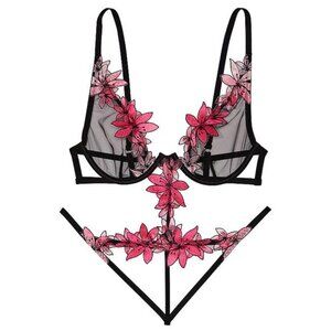 Victoria's Secret | Strappy | Bodysuit | Floral | Teddy | Embroidery | Embroidered | Lingerie | Pink | Flowers | Underwear
