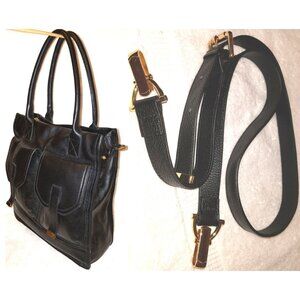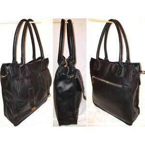 EXTRA-LARGE KRISTEN BELL FOR ERICA ANENBERG BLACK LEATHER CONVERTIBLE MULTI-STRAP HANDBAG, 14X13X5 WITH AN 8.5 HANDLE DROP AND A 21 STRAP DROP, SILVER TONE HARDWARE, 1 ZIP, 2 SLIP AND 1 LARGE SNAP CLOSURE POCKETS, 1 EXTERIOR ZIP AND 2 FLAP COVER POCKETS. GENTLY LOVED AND PROFESSIONALLY REFURBISHED, EXTREMELY CLEAN INSIDE AND OUT. IN EXCELLENT CONDITION.