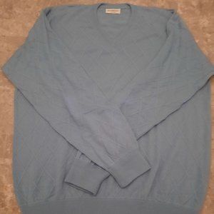 Gorgeous blue gentlemen's 100% pure three-ply cashmere sweater by MANRICO! MADE IN ITALY! Chest is 50 inches. Length is 29 inches. NEVER WORN!! Great quality! Lattice work design. First picture is most accurate on color. Total luxury! Total Style!