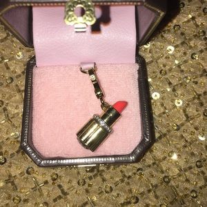 It's easy to find pink lipstick charms by juicy in silver and gold, but this one is super rare. It's a coral red lipstick that's retired and the only one on the internet right now! Willing to trade for other juicy charms. EUC