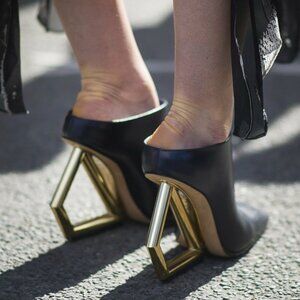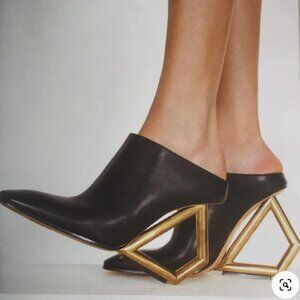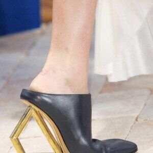 EXTREMELY RARE - Spring 2014 Celine mules with gold architectural heel