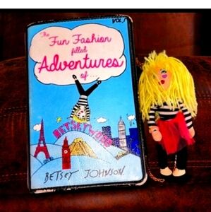 EXTREMELY RARE VINTAGE ONE OF A KIND BETSEY JOHNSON BOOK PURSE WITH BETSEY DOLL