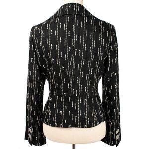 Gorgeous & unique EYE black & white linear stitching detail linen blend 1 button blazer. Notched collar. Clear etched pattern buttons. Buttons at the cuffs. 2 front patch pockets. Fully lined.