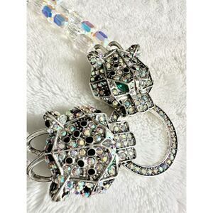 EYE CANDY LUXE Collection Aurora Borealis Dual Crystal Cube Panther Necklace NWT