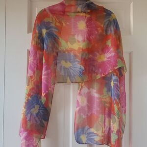 EYEFUL SHEER FLORAL SCARF WRAP RED BLUE YELLOW PINK GREEN