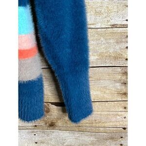 OPEN NECKLINE AND LONG SLEEVES. EYELASH KNIT FABRIC. GEAT TEXTURED LAYERING TOP. FUN COLOR AND SOFT STRETCH MATERIAL. NO FLAWS. ITEM IS NWT. SEE PICS FOR MATERIAL TAG.