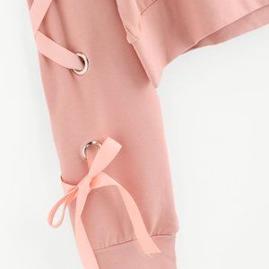 EYELET LACE UP SLEEVE CROP SWEATSHIRT