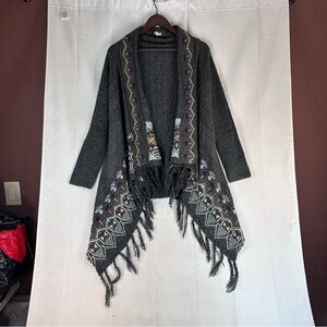 EYESHADOW Women’s Size L Sweater Cardigan South Western Fringe Style Open Front
