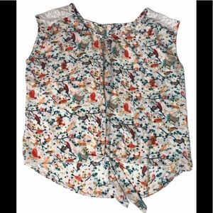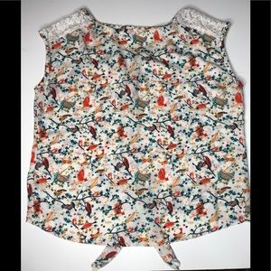Eyeshadow bird sleeveless semi sheer blouse Large