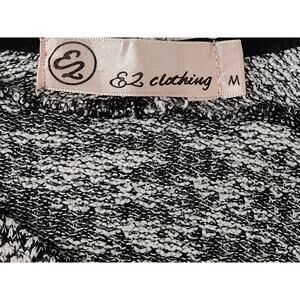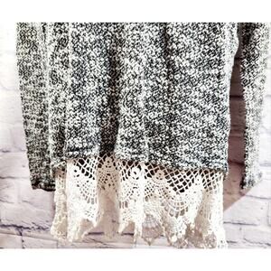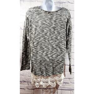 EZ Clothing Black White Knitted Sweater Top With Crochet Lace Trim Medium Soft