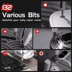 【Magnetic Screwdriver Kit】This electronic screwdriver set includes 116pcs magnetic bits set(hex, phillips, torx, pozidrive, tri-wing, triangle,etc), 12pcs socket screwdriver bits, 4pcs deep hole screwdriver bits, adjustable screwdriver handle, extension bar, tweezers, 5pcs opening tool, 2pcs suction cup and 2pcs deep spudger. A variety of commonly used screwdriver bits can definitely meet daily needs.