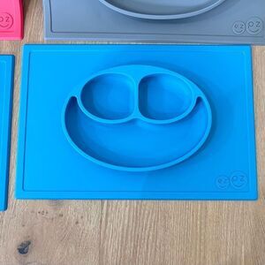 EZPZ Happy Mat Placemat Silicone Suction Plate and Bowl Pink, Black Blue Set of