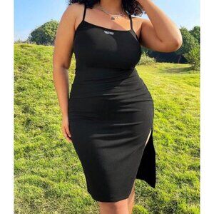EZwear Plus Size Black Knitted Slim Fit Split Bodycon Dress 4x 20