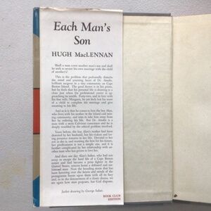 Each Man’s Son by Hugh MacLennan. This is a hardcover book. It was published by Little Brown Company in 1951. This book has 244 pages. It is approximately 8 1/2” long x 5 3/4” wide x 1” thick. This book is in great vintage condition. Binding is in great shape, slight wear to the dust cover, no writing in the book, no torn pages, no discoloration to the pages. Smoke free home.