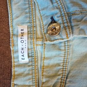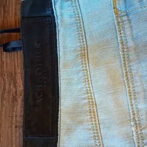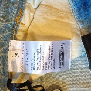 Each x Other Paris Distressed Light Wash Denim and Leather Jeans aaa