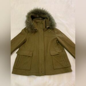 Eachway Sports Women's Jacket Faux Fur Outer Shell Hooded Brown Green Size M