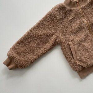 Sherpa fleece jacket in a clay brown color. Shows some minor wear by the zipper but overall in great shape. Size 4. Gender neutral!