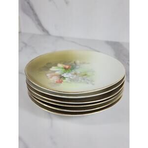 Eagle China Austria Bread Plate White Grapes Porcelain 6 1/4" Gold Trim x6