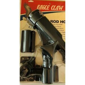 Eagle Claw ABRH3PC Boat Rod Holder w/3 Adaptors 360 Rotate & Vertical Adjustment. New old stock. Side, flush or rail mount. 360 degree rotation vertical adjustment. Accepts all size rods. Corrosion resistant. Made of high-impact plastic
