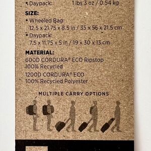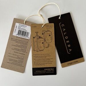 The ultimate travel bag, the Caldera Convertible International Carry-On Bag features a rolling design that is able to convert into a full-carry backpack with padded shoulder straps and hip belt. (See YouTube link below and attached images of tags for illustrations of multiple carry options)