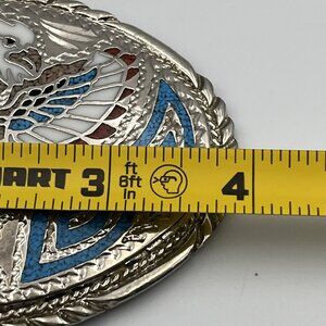 Eagle Dancer Belt Buckle Native American Turquoise Coral Inlay Vtg SSI USA