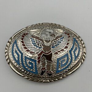 Eagle Dancer Belt Buckle Native American Turquoise Coral Inlay Vtg SSI USA. NO Belt.