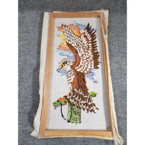 Eagle Embroidery Handmade Crafted Needlepoint Thick Thread Puffy Owl Tree 12"x 24"