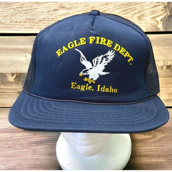 Eagle Fire Dept Trucker Hat Vintage Snapback Mesh Navy Blue Idaho