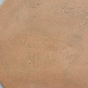 Eagle Pottery Plate Signed Sherri McNeil 1992 Blue Beige Floral