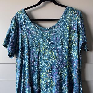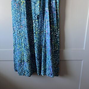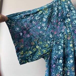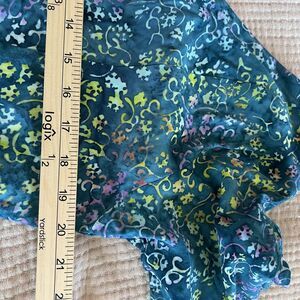 Color/Pattern: Blue/teal base with multicolor batik floral and vine print