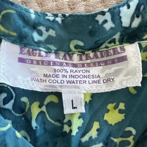 Eagle Ray Traders Dress Womens Large Blue Rayon Boho Batik Maxi Pockets Tie Back